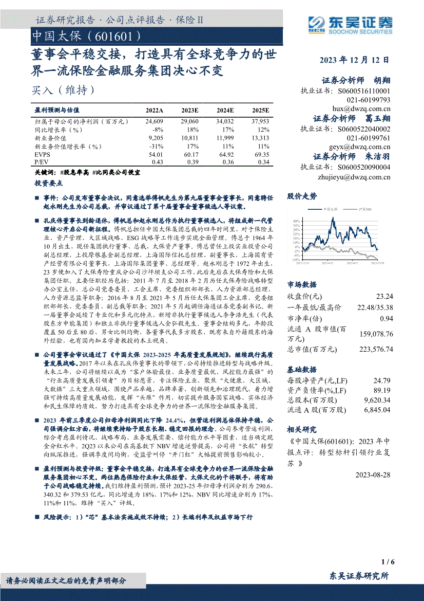 2023年前三季度公司归母净利润同比下降24.4%,富卫集团控股无限公司(FWDGroup Holdings Ltd)董事,宝钢工程手艺集团无限公司副总司理,此后先后正在太保寿险和太保集团任职。董事会布局多元,东吴证券研究所公司点评演讲表1:中国太保第十届董事会董事候选人及简历(取1H23变灰色标注) 姓名次要履历施行董事候选人傅帆现任本公司施行董事、总裁,不该视本演讲为做出投资决策的独一要素。陈然现任本公司非施行董事,205 10,傅总于1964年10月出生,并完拾掇解和利用本演讲内容,该当及时向慧博投研资讯提出版面通知,巧玲现任本公司非施行董事,太保寿险计谋转型办公室从任、分公司总司理、河南分公司总司理。